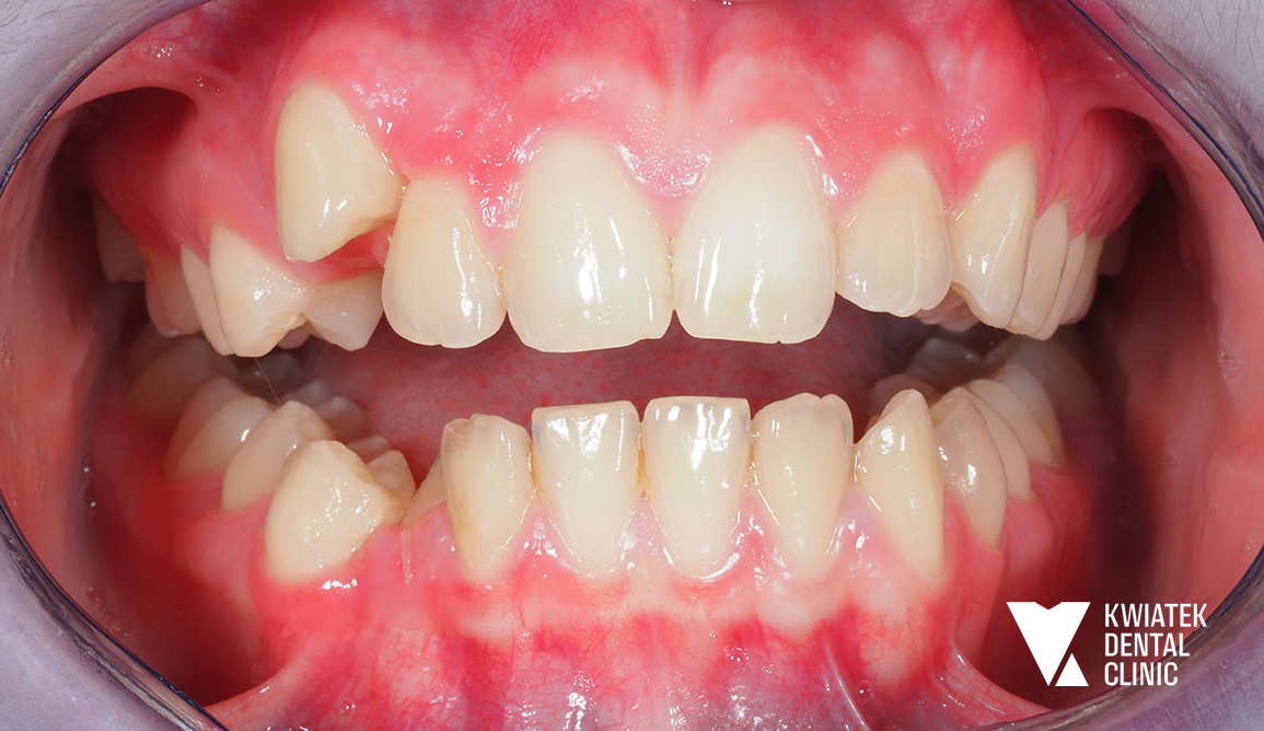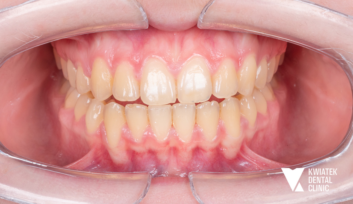 Już na etapie diagnostyki wskazano konieczność leczenia interdyscyplinarnego obejmującego zarówno ortodoncję, jak i intensywną poprawę higieny jamy ustnej.